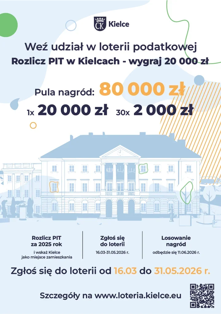 W tegorocznej edycji loterii do podziału jest 80 tysięcy złotych. Organizatorzy przygotowali 31 nagród finansowych – jedną główną o wartości 20 tysięcy złotych oraz 30 nagród dodatkowych po 2 tysiące złotych. To właśnie ten zestaw ma przyciągnąć osoby, które rozliczają podatek w Kielcach i mogą potraktować coroczny obowiązek jako okazję do zysku.