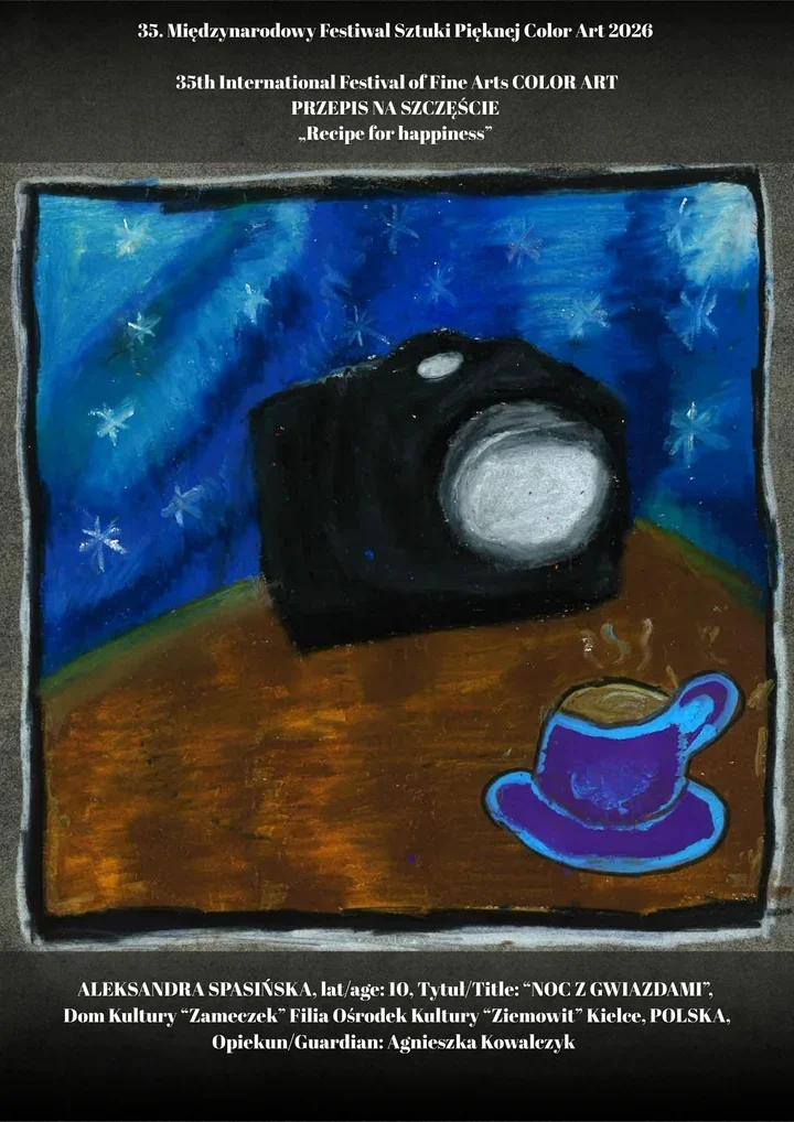 Doceniona została praca „Noc z Gwiazdami”. Tegoroczne hasło festiwalu brzmiało „Przepis na szczęście”, więc jury i organizatorzy szukali obrazów, które potrafią opowiedzieć o emocjach, wyobraźni i własnym spojrzeniu na świat. Właśnie taki język sztuki zwykle najmocniej przebija się w konkursach dla młodych autorów.