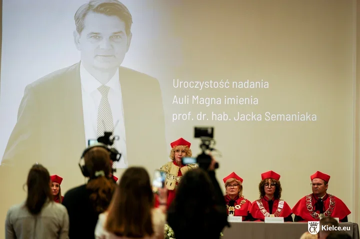 W sercu rektoratu UJK w Kielcach zapadła decyzja, która łączy pamięć z codziennością uczelni. Reprezentacyjna Aula Magna odtąd nosi imię prof. Jacka Semaniaka, rektora, który przez lata był jedną z najważniejszych postaci uniwersytetu. Podczas uroczystości nie chodziło tylko o symbol – w sali, gdzie zwykle świętuje się największe akademickie momenty, mocno wybrzmiał także osobisty wymiar tego gestu.